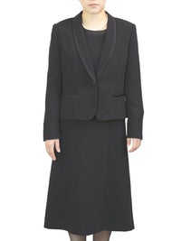サテンパイピングで品良くキレイ魅せ ブラックフォーマルアンサンブル(ショールカラージャケット+七分袖ワンピース)レンタル 礼服 喪服 葬式 葬儀 法事 F00512