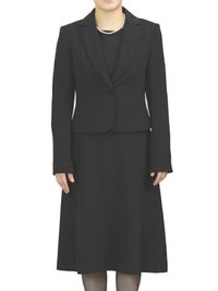 シンプルなのにキレイ魅せ 細見えワンピで着やせ効果あり ブラックフォーマルアンサンブル(テーラードカラージャケット+シフォン袖ワンピース)【靴 バッグ パール付き】レンタル 礼服 喪服 葬式 葬儀 法事 F00613S