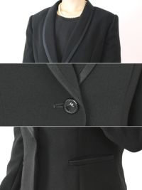 サテンパイピングで品良くキレイ魅せ ブラックフォーマルアンサンブル(ショールカラージャケット+七分袖ワンピース)レンタル 礼服 喪服 葬式 葬儀 法事 F00512