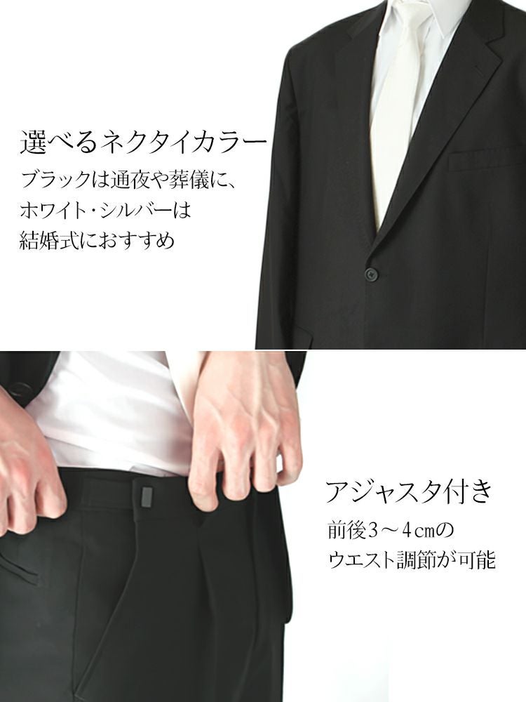 他の画像を見る 通夜や葬儀に 涼しい素材 夏 E体 大きい体型用 ウエスト100cm以上の喪服 サマーフォーマル シングル【ネクタイ付き】レンタル礼服 略礼服 紳士 メンズ 礼装 冠婚葬祭 葬式 法事 レンタル価格 ¥ 5,800 税込 詳細を見る お気に入りに登録する