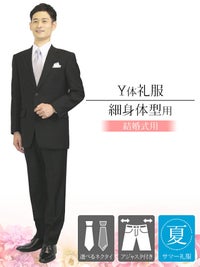 結婚式に 涼しい素材 夏 Y体 細身体型用 スリムな礼服 サマーフォーマル シングル【ネクタイ付き】レンタル礼服 略礼服 紳士 メンズ 礼装 冠婚葬祭 慶事