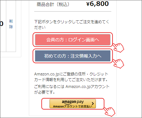●初めてご利用になられる方は「初めての方:注文情報入力へ」からお客様情報入力のページへ進んでください。