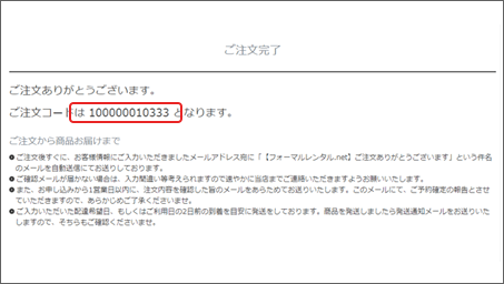 ご注文後すぐに「【フォーマルレンタル.net】ご注文ありがとうございます」という件名の自動返信メールが届きますがこの時点ではご予約確定ではありません。もし自動の注文確認メールが届かない場合は、アドレスの入力間違い・ドメイン設定によるメール不着・迷惑メールフォルダへの振分け等が考えられますので、その際には問合せよりご連絡をいただきますようお願いいたします。また、ご注文内容に間違いがある場合も、すぐにご連絡をお願いいたします。 当店への問い合わせ